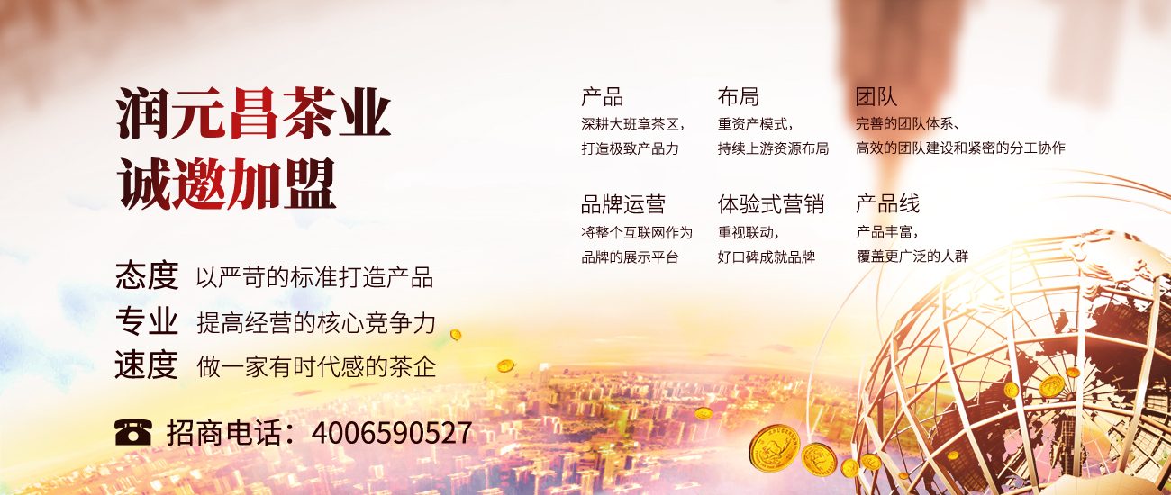 润元昌是一家专注于高端普洱茶产品研发的品牌,主营产品有生茶、熟茶、柑普茶和红茶,在茶行业有较高品牌知名度,是消费者喜欢的茶叶品牌和云南普洱茶十大品牌,在中国有700家普洱茶加盟连锁店,提供普洱茶加盟代理,茶叶批发和各种普洱茶价格,润元昌普洱茶招商加盟电话:4006-590-527,了解更多普洱茶行情报价、茶叶知识上润元昌普洱茶网。