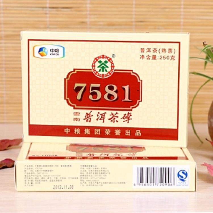 中茶7581普洱茶被称为最具代表性的普洱熟茶。7581代表了1975年的配方8级茶青,也是中茶昆明茶厂的代号。7581普洱茶为中国名茶普洱茶的高档产品,原料来自云南普洱的发源地普洱市,海拔高2000米以上、岩石基质土壤种植的茶树,具有“鲜、香、韵、锐的综合特征。香气高强,浓馥持久,花香鲜爽,醇正回甘,观音韵足,茶汤金黄绿色,清澈明亮。口、舌、齿、龈均有刺激清悦的感受,产品备受广大消费者的青睐。