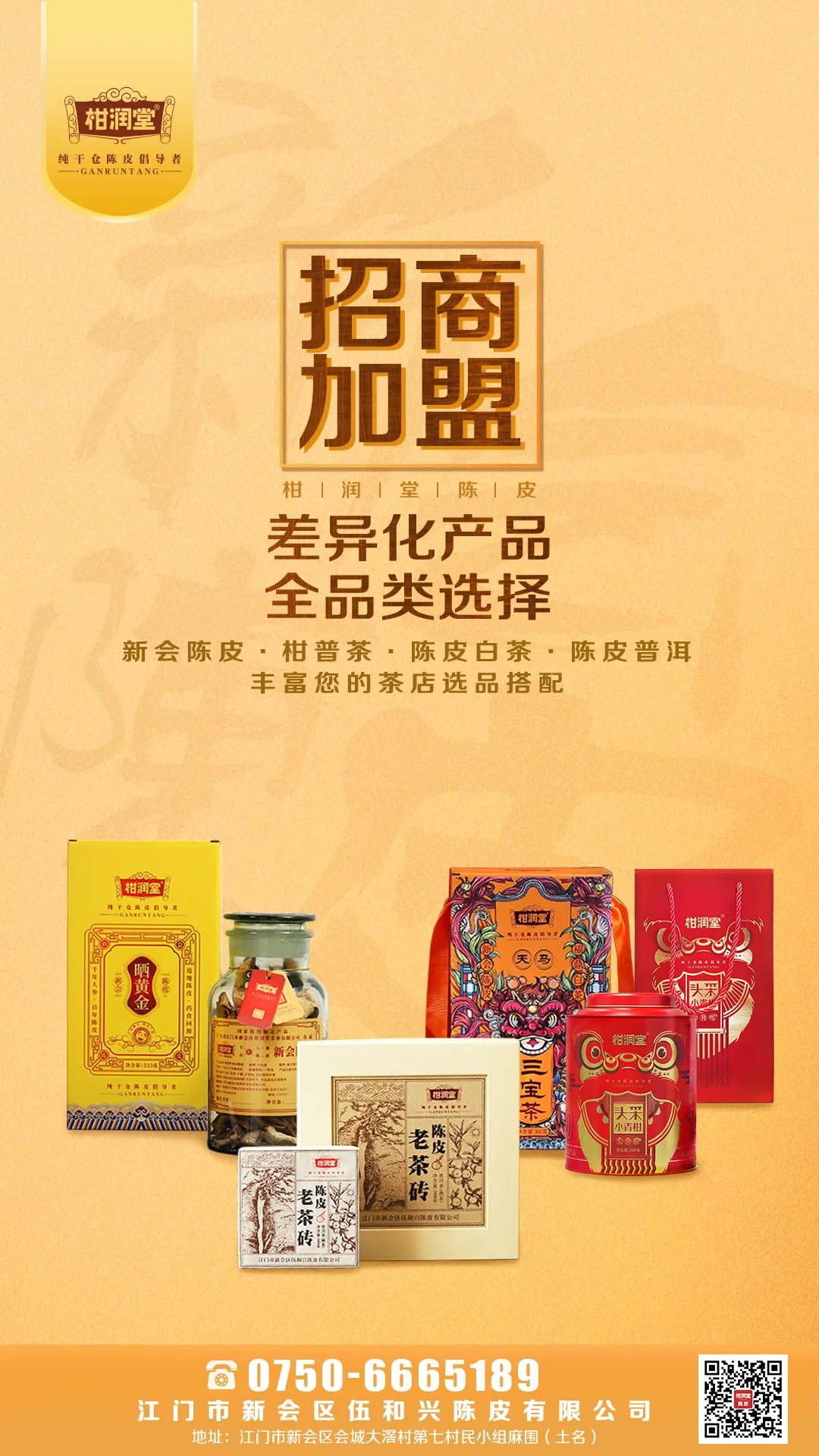 柑润堂是江门市伍和兴陈皮有限公司运营商标,以“纯干仓陈皮”和“正宗地道柑普茶”而闻名,十大新会陈皮品牌,签约超20家新会核心产区柑园,是一家专注于高品质陈皮生产厂家,提供正宗新会小青柑、陈皮代理批发价格以及代加工服务,现面向全国招商,柑润堂陈皮零门槛加盟【无需费用】,招商加盟电话:15274934130