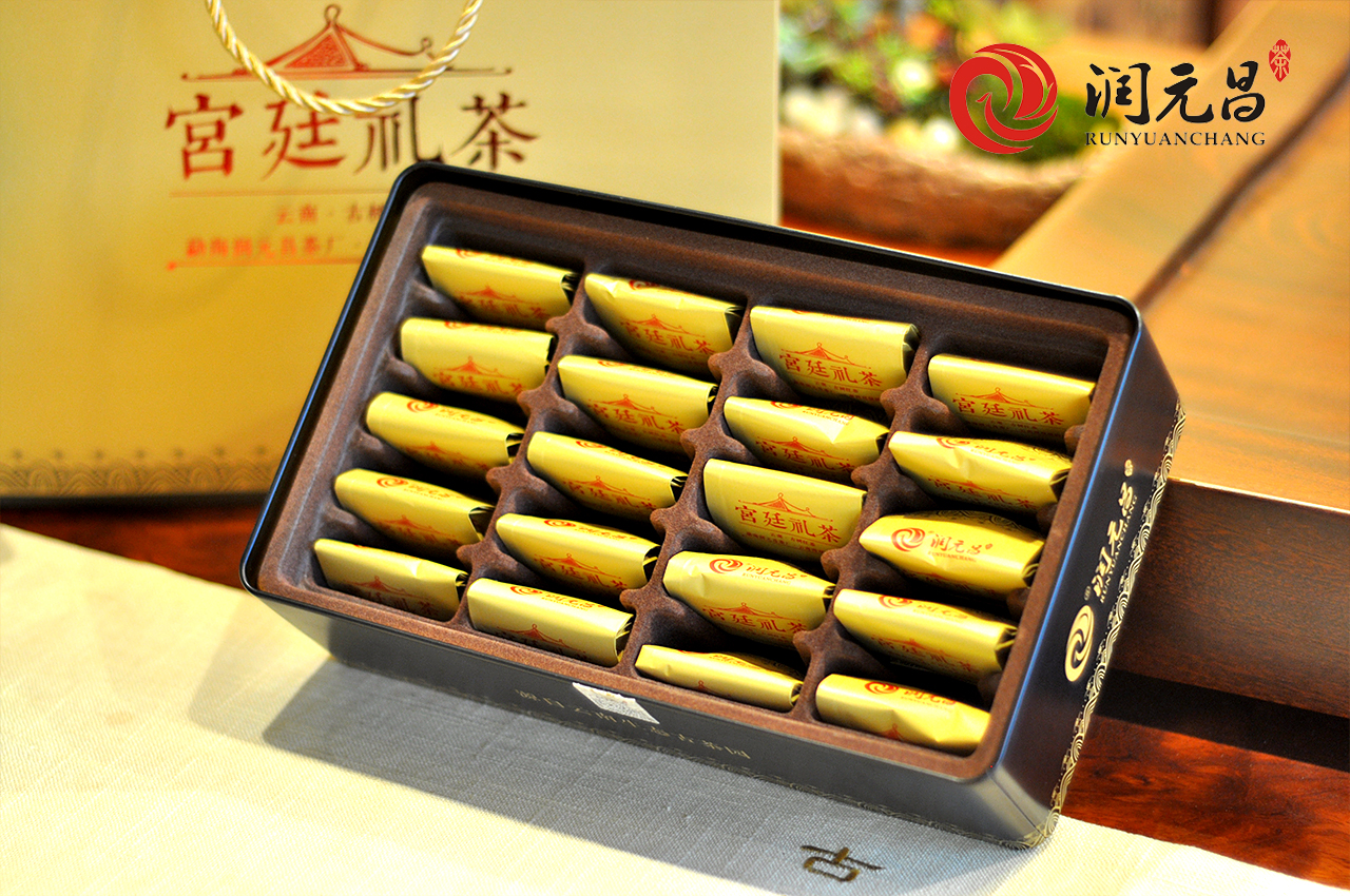 润元昌宫廷礼茶,采用云南生态春茶原料发酵,香高、汤甜、滋味纯正。独立铝袋包装,简单大方,便携易泡,自用送礼皆宜。