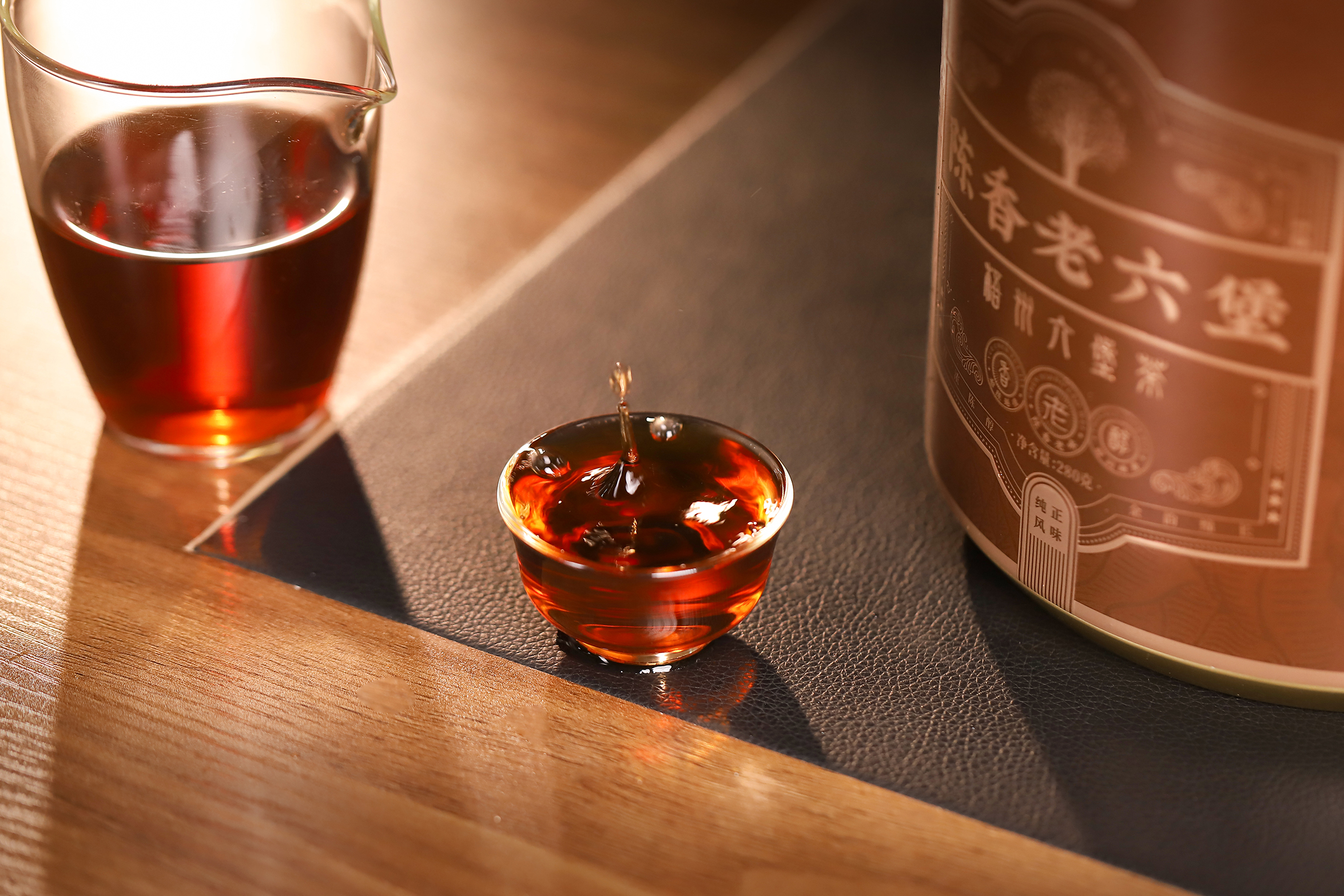 入口绵滑干净,甜醇鲜爽,丰富协调。独特的汤香浓郁溢满口腔,有“煲汤”式的内质香,老味明显,回味绵甜,还有轻微的体感。啜饮一杯又一杯老六堡,如同暖流滑过心田,入腹舒适无比。