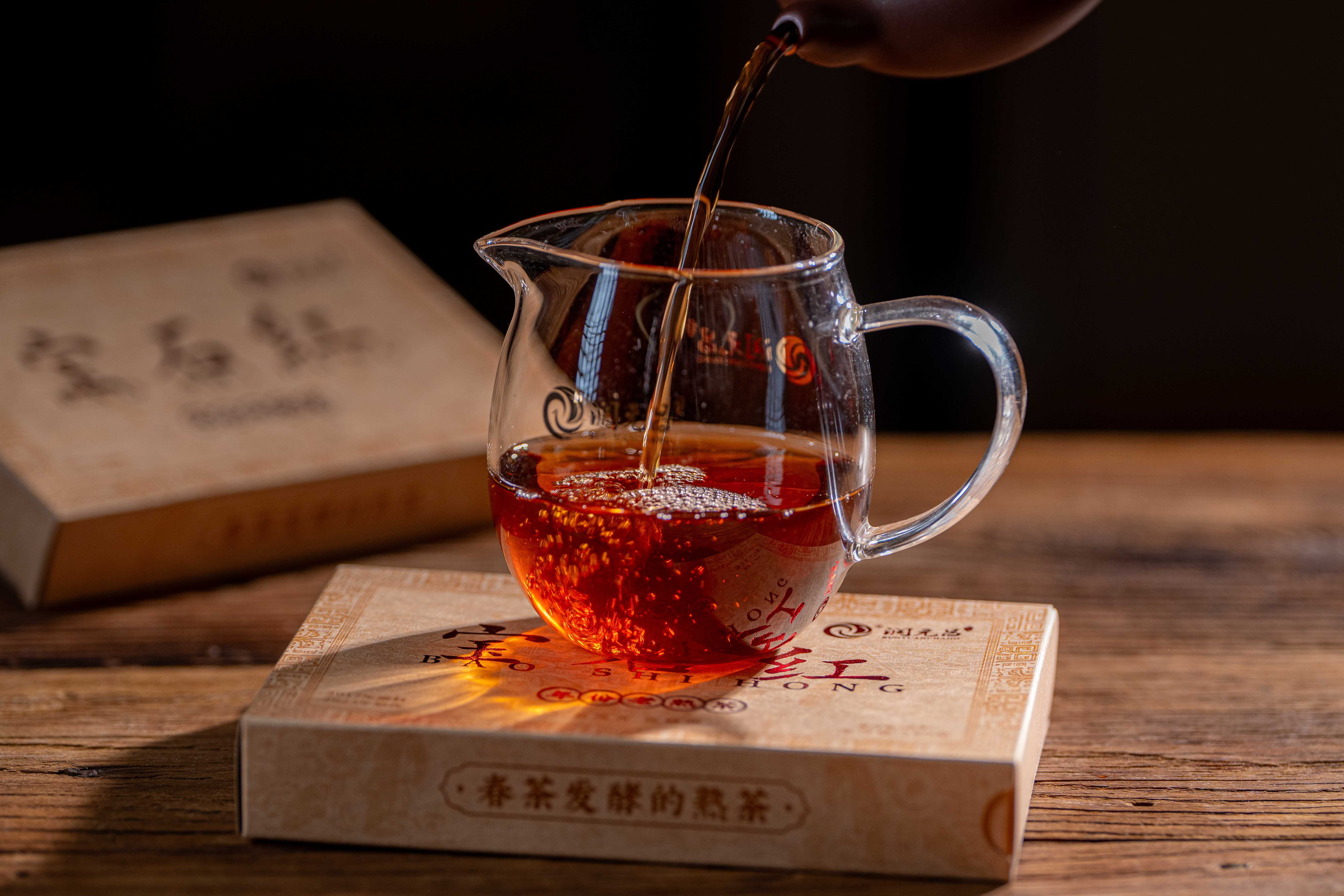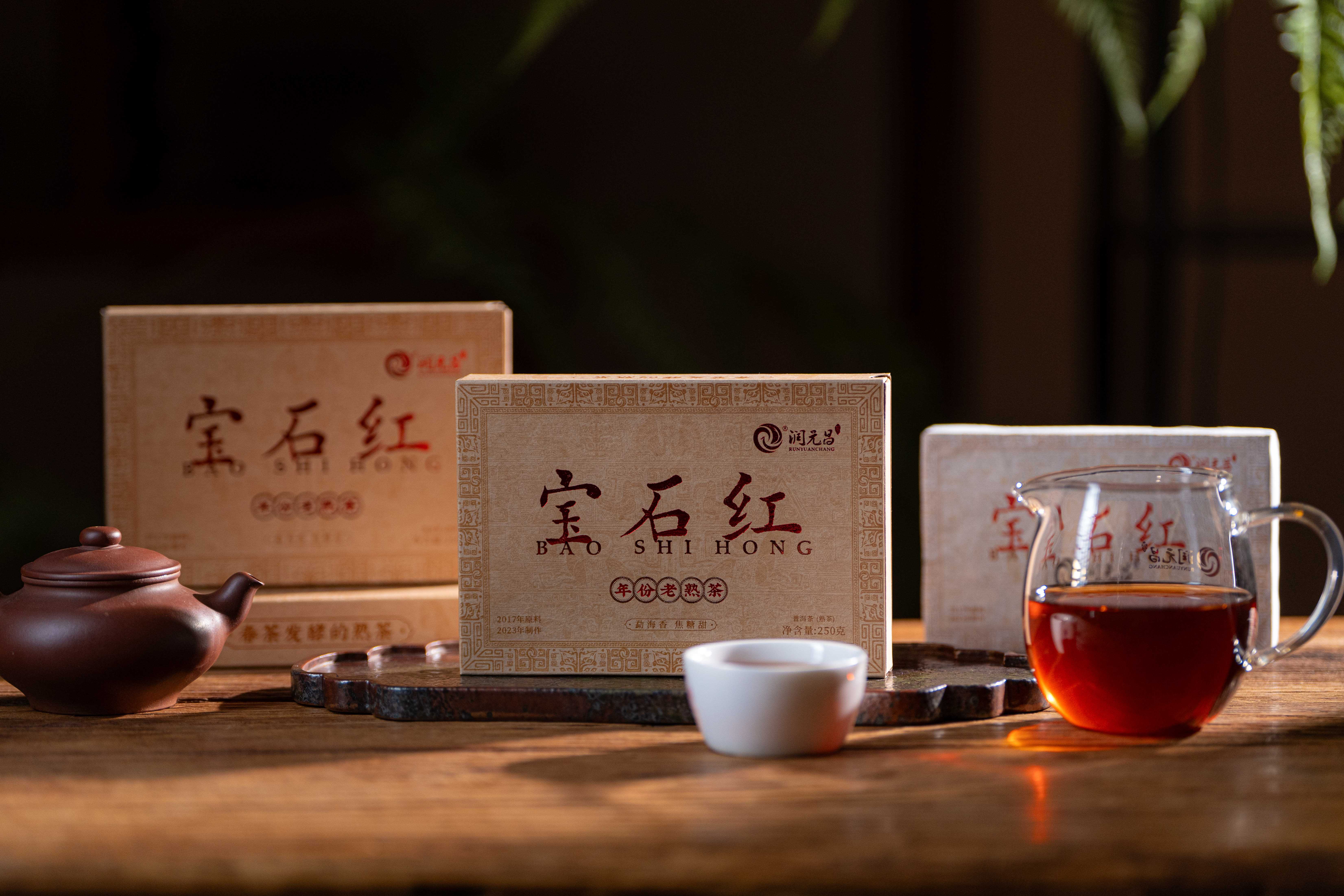 润元昌宝石红熟茶甄选2017年勐海高海拔纯料发酵,8年干仓陈化至今,圆润适饮,茶汤红艳透亮,宛如温润的宝石。
